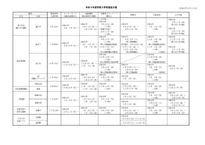 入試日程 [令和9年度入学者選抜]